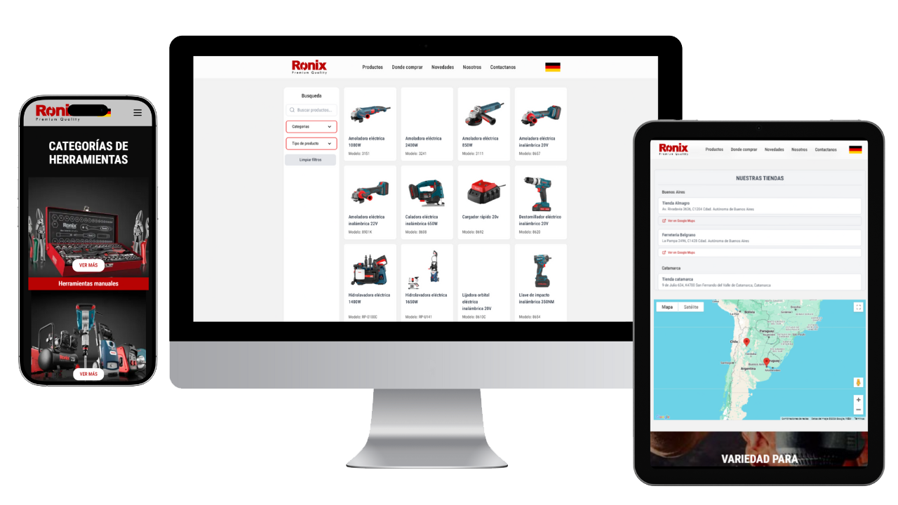 Plataforma de presentación y venta mayorista de herramientas con sistema de autogestión completamente personalizable. Todos los componentes web son editables, permitiendo una administración ágil y flexible del contenido.