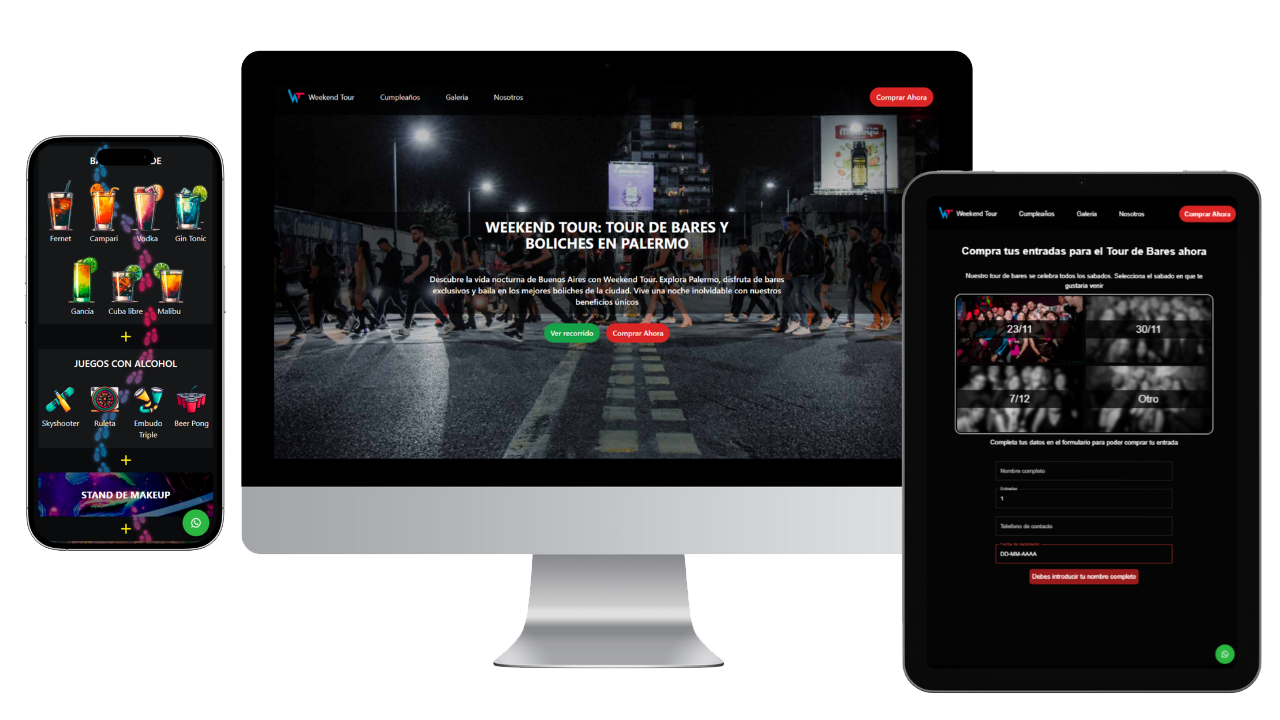 Experiencia única de entretenimiento nocturno en Buenos Aires con sistema de ticketing a medida y galería dinámica.